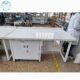 Mesa de trabajo con tres cajones, espacio con entrepaño y puerta. Espacio superior para guardar con puertas de corredera . Dimensiones :Alto 95 cm ancho 120 cm Fondo 70 cm